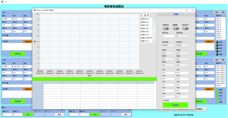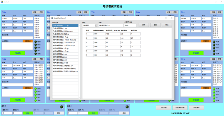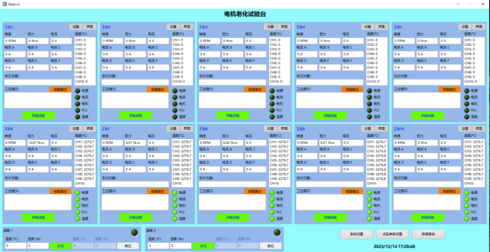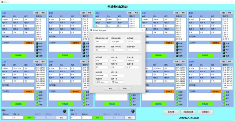 【简述】:该测试系统包含两个温箱、两个工装台、两个电控箱和一个控制台;左右各五工位电机,可以测试电机在不同温度工况下负载循环和时间循环耐久性能