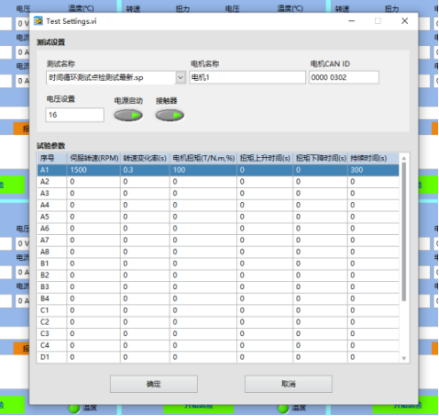 3) 点击测试界面设置”,设置电机试验基本参数(图7.2.3
